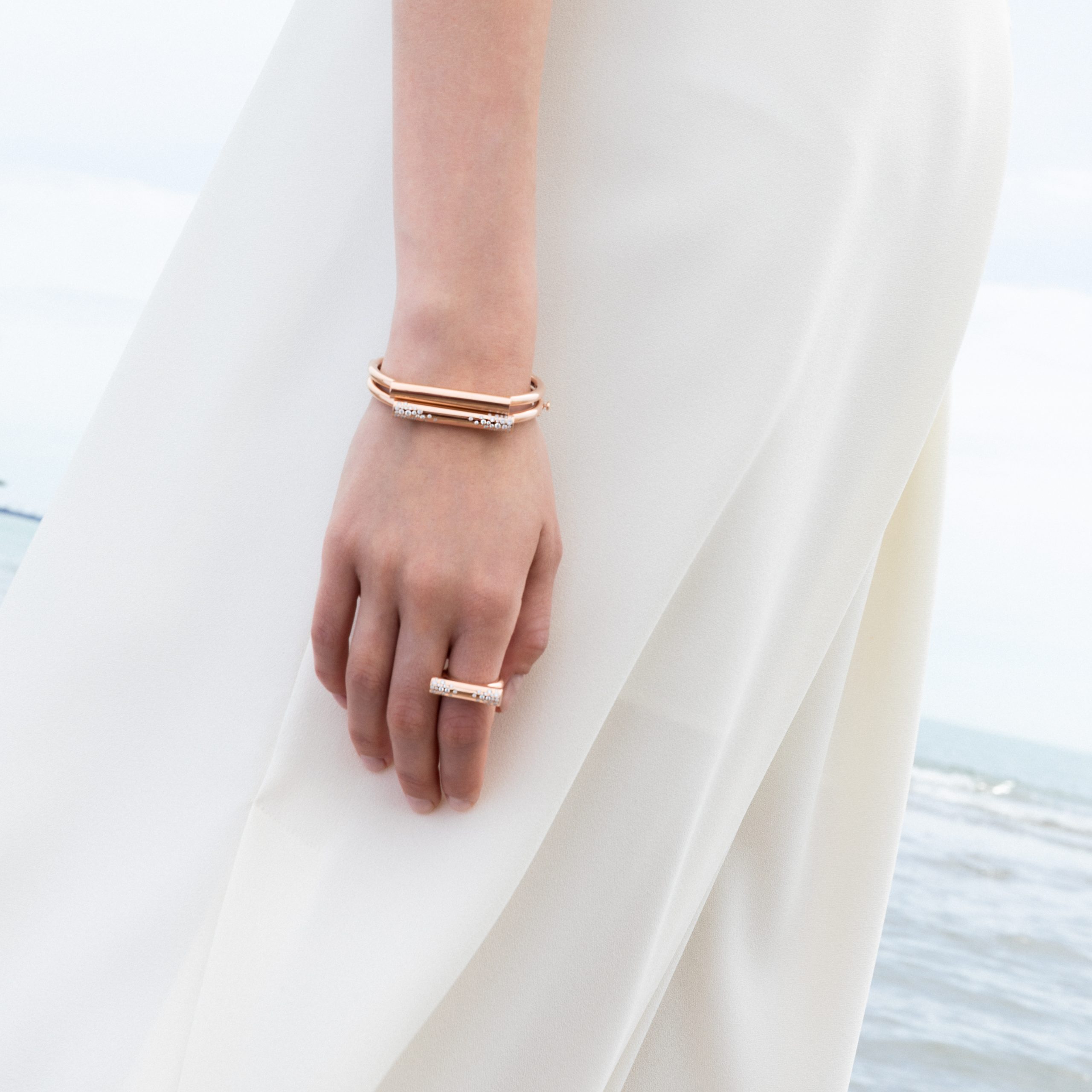 The essence of beauty is the star of this bangle by Roberto Coin in 18kt rose gold and diamonds, featuring all the uniqueness of a handmade creation.