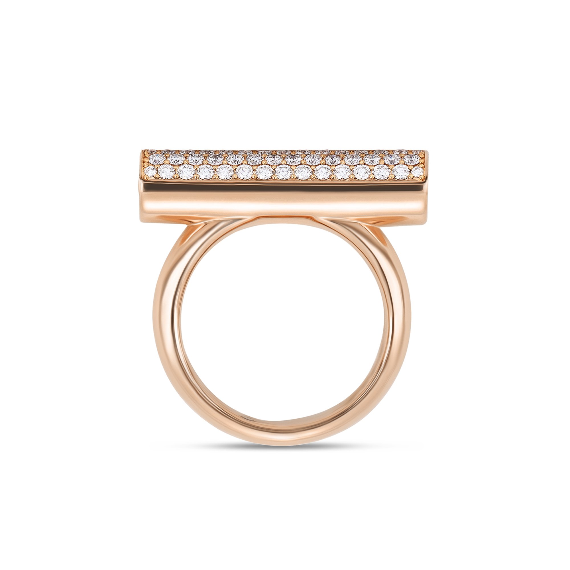 + Free ShippingContemporary look is the star of this ring by Roberto Coin, in 18kt rose gold, featuring diamonds and all the uniqueness of a handmade creation.