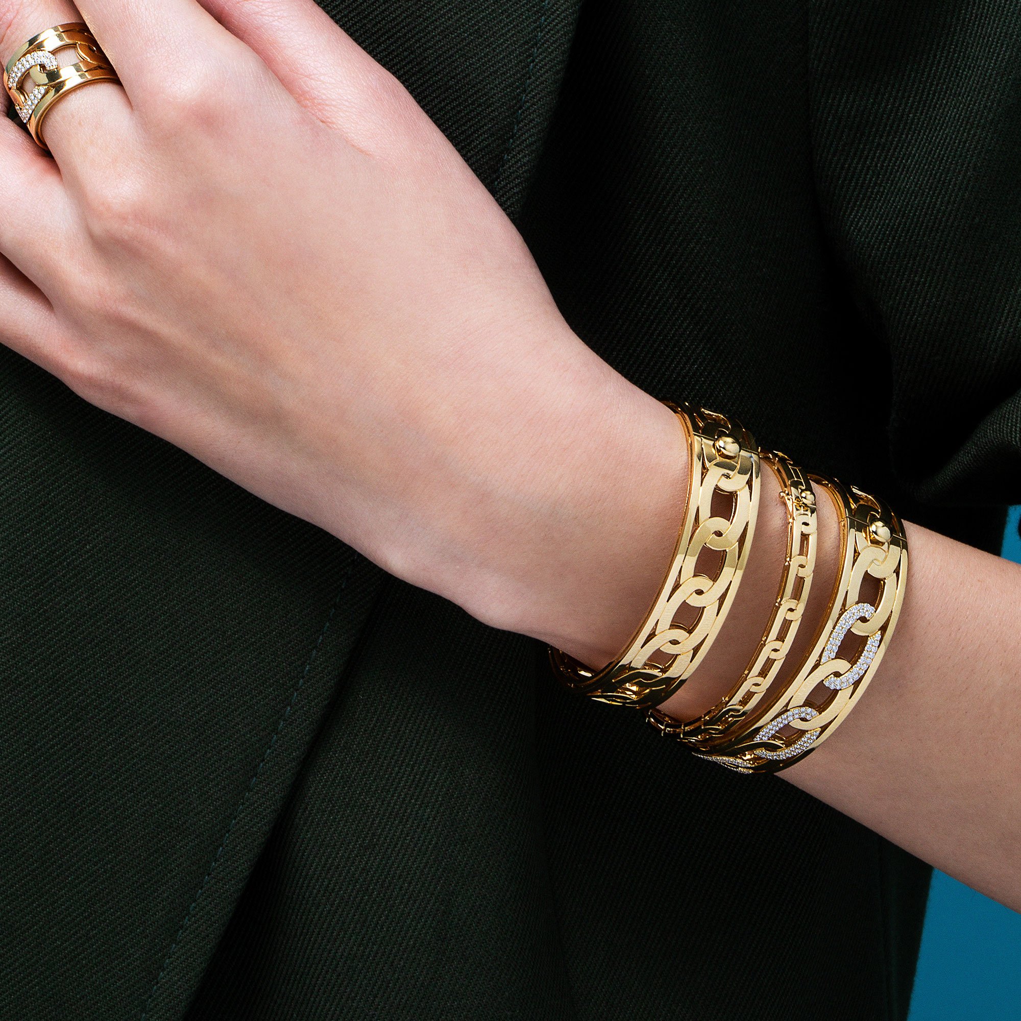 Navarra bangle in 18kt yellow gold with diamonds. Wide version.
