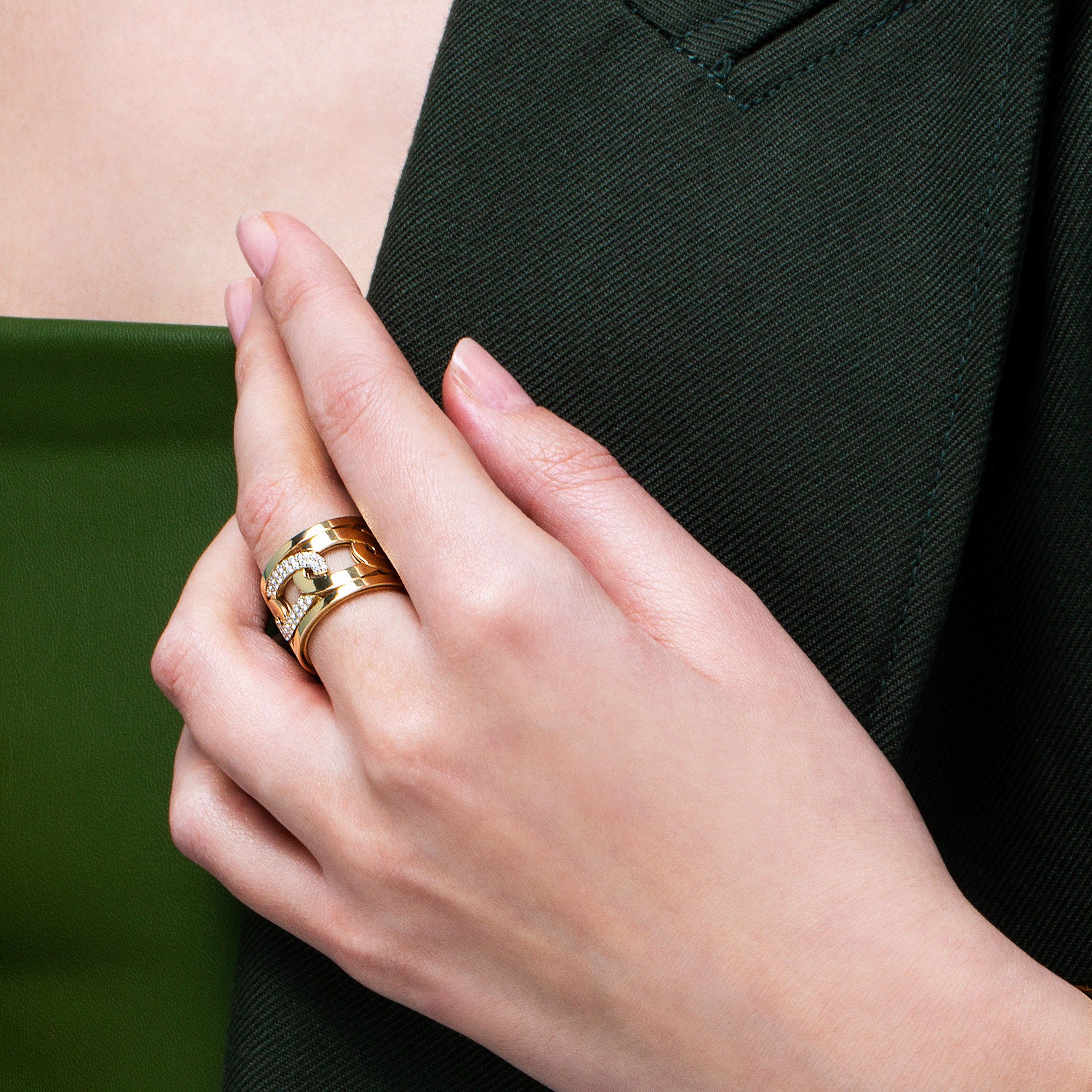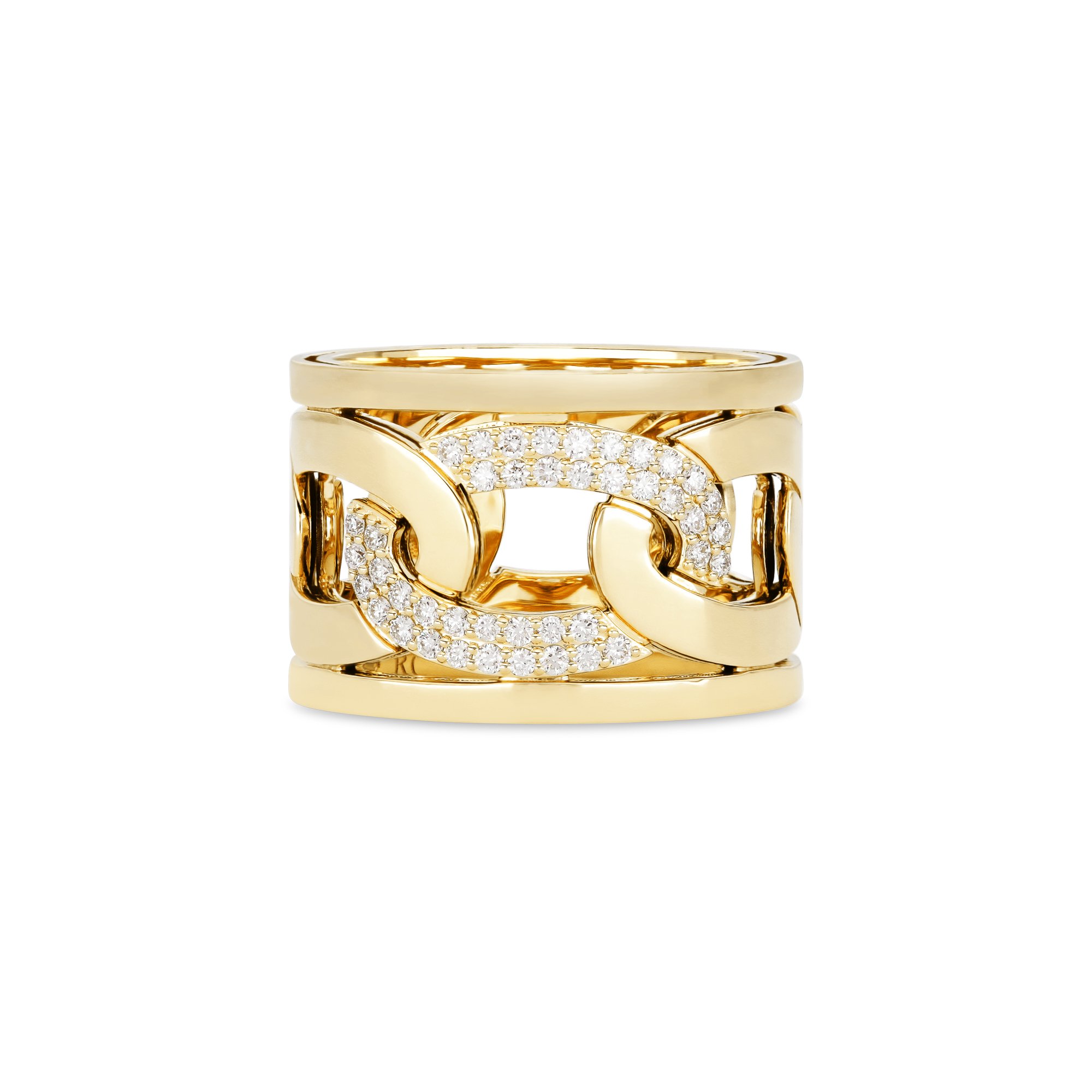 Navarra chain link ring in 18kt yellow gold with diamonds. Wide version.