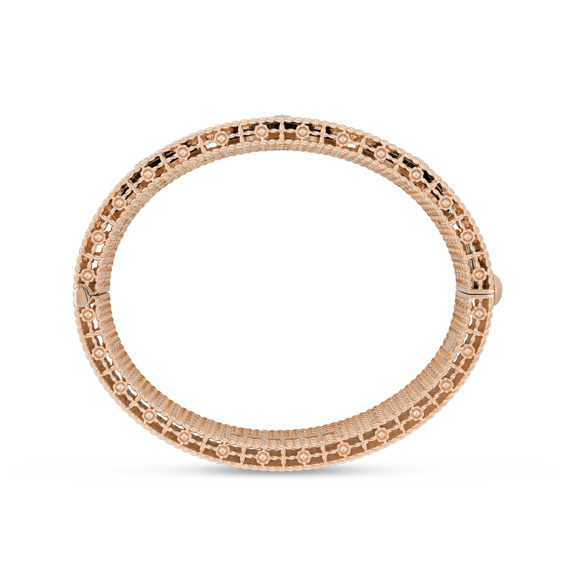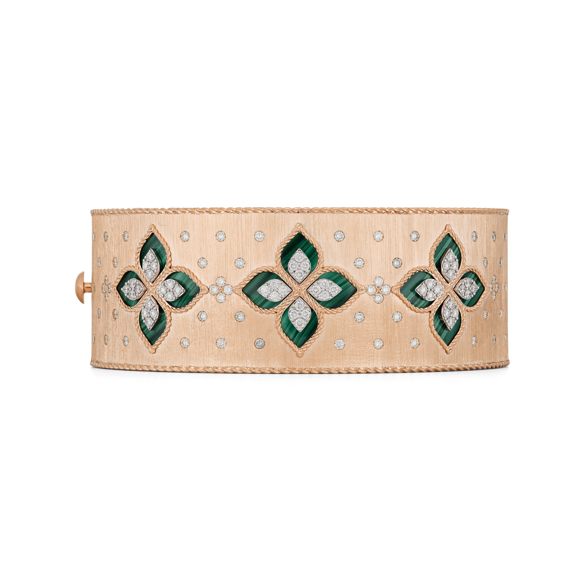 Princess Flower bangle in 18kt rose gold with malachite and diamonds.