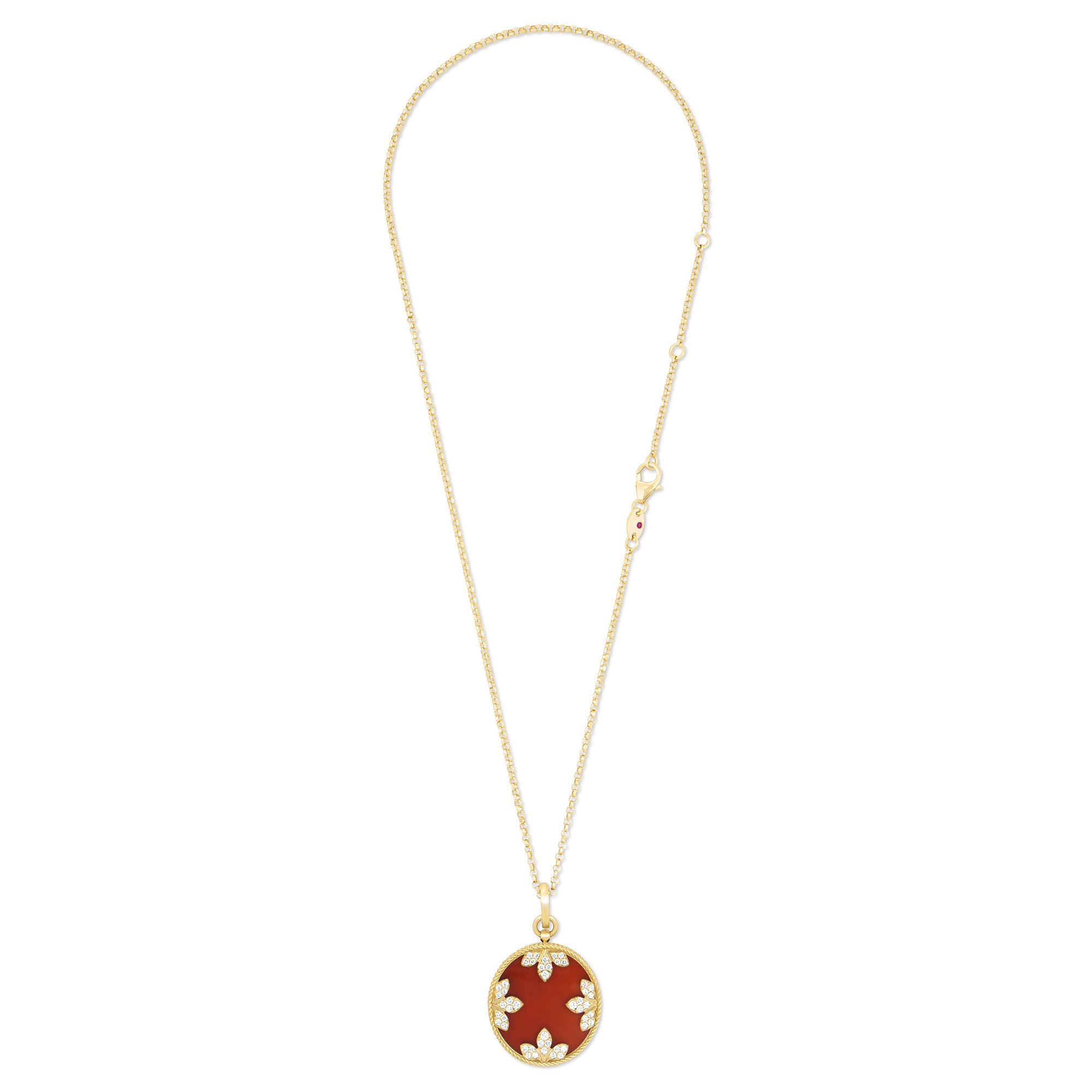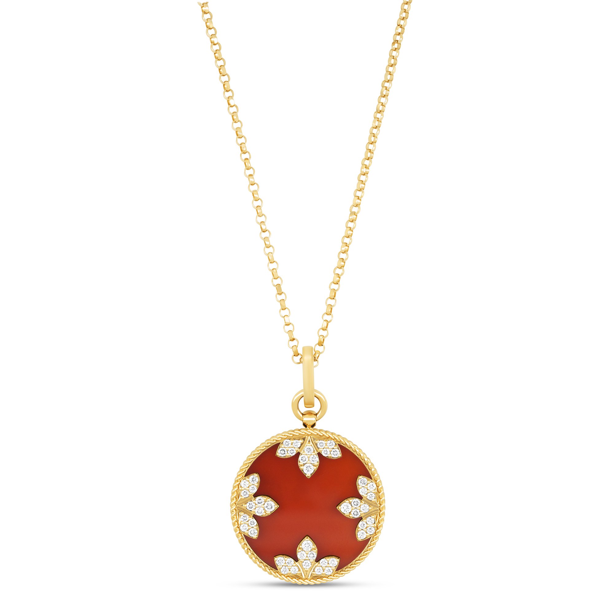 Venetian Princess Medallions pendant in 18k yellow gold with red agata and diamonds.