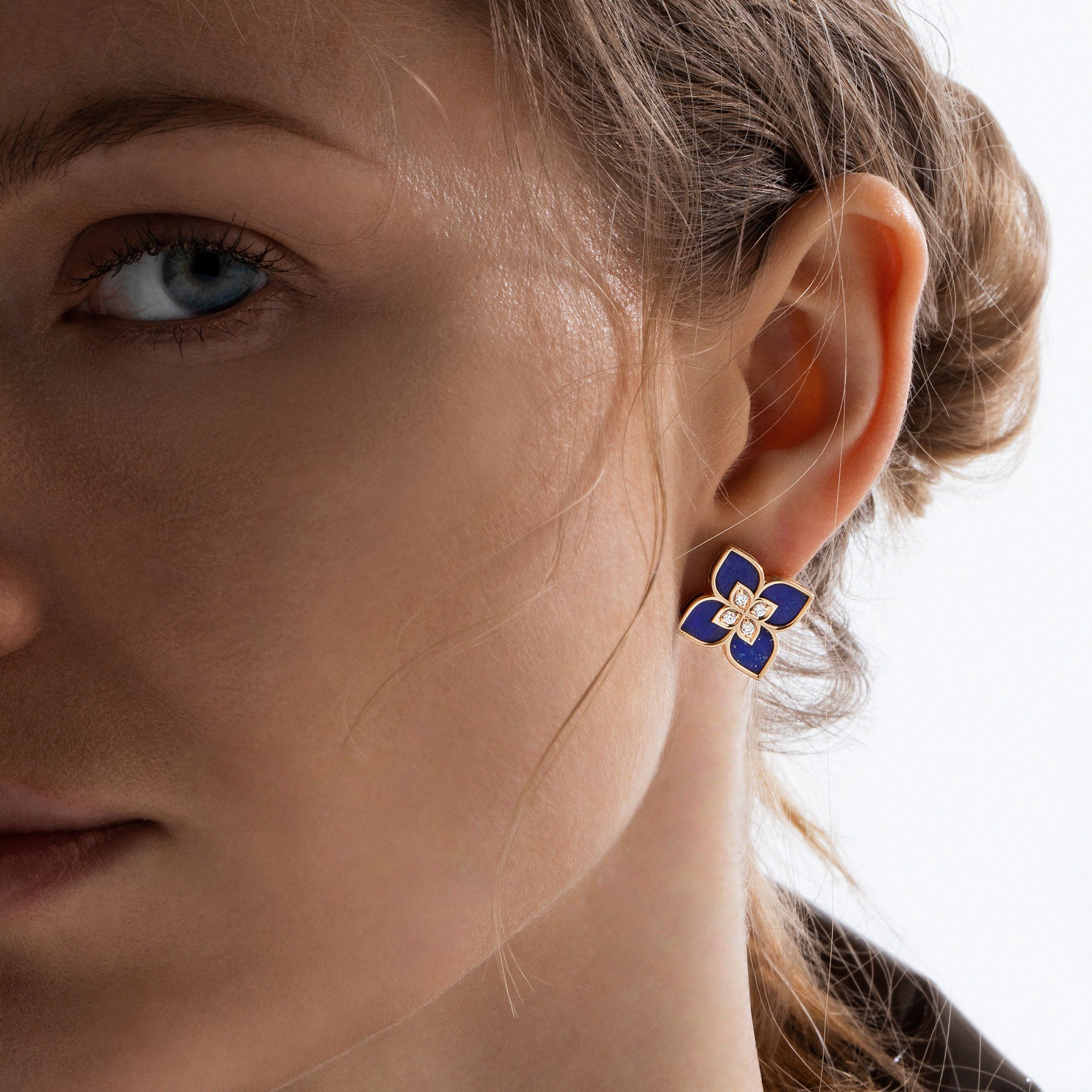 Venetian Princess stud earrings in 18kt rose gold with lapis lazuli and diamonds.