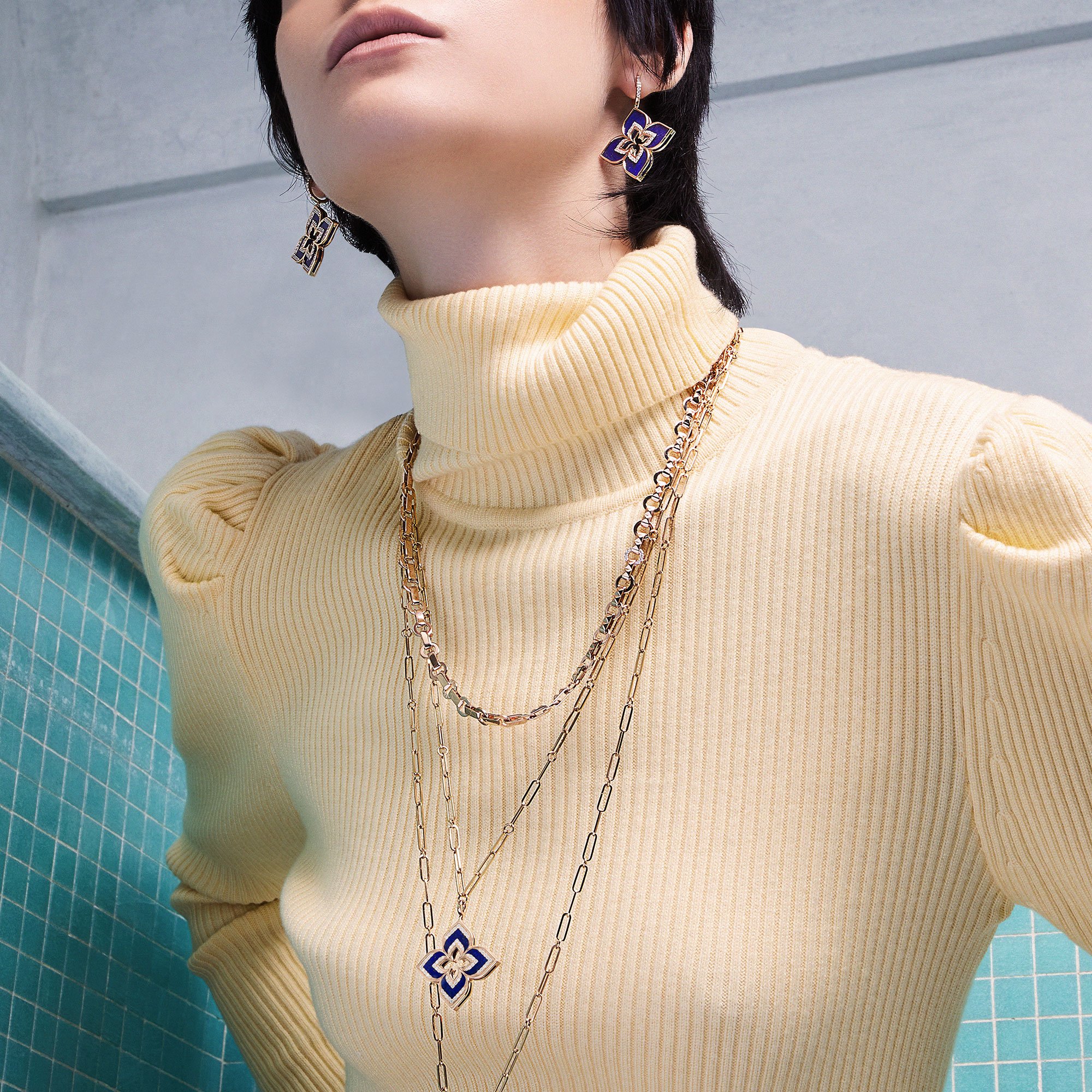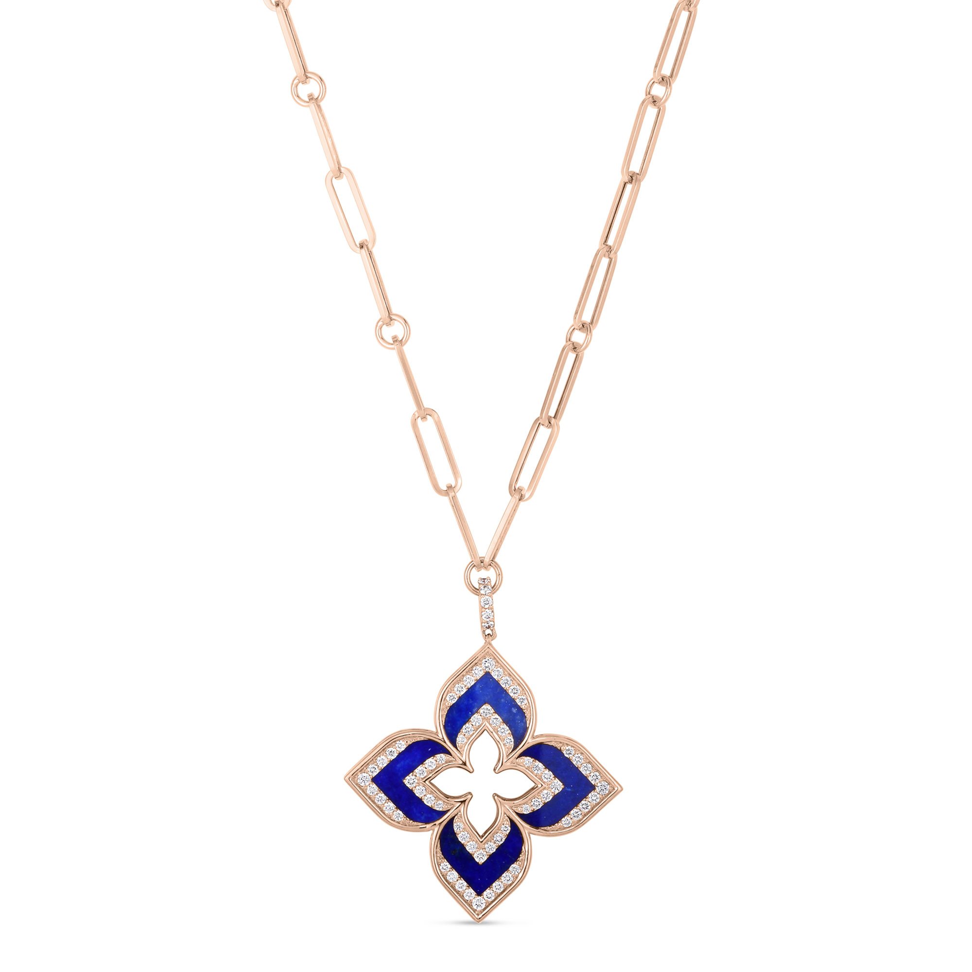 Venetian Princess pendant in 18kt rose gold with lapis lazuli and diamonds. Two row diamonds large version.